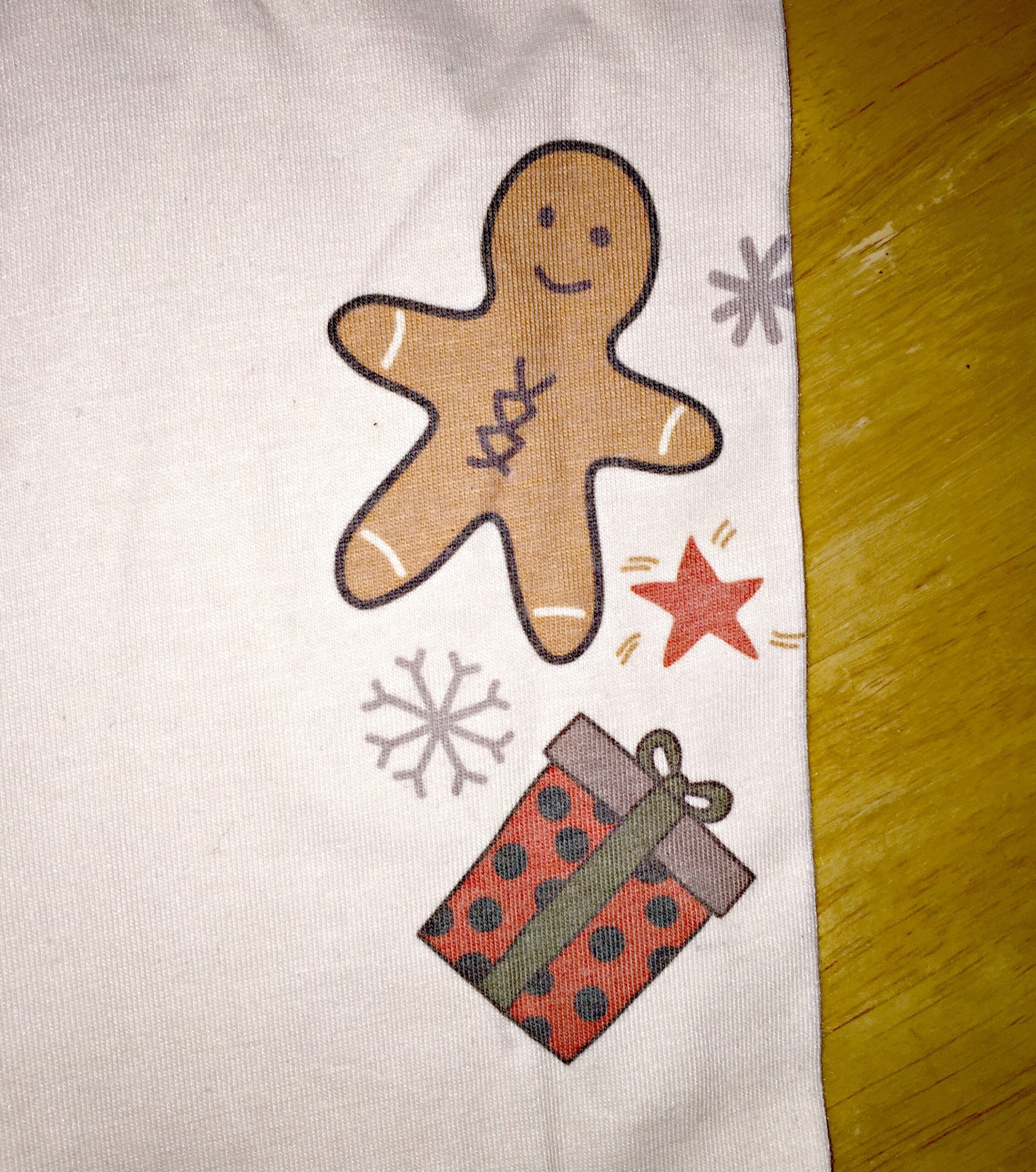 The tops arrived in a well presented box, wrapped in tissue paper and are really good quality. There is some great detailing on the top from pictures on the sleeves of gingerbread men and presents and a sugar cane on the back of the top, giving them that extra attention to detail. The cotton of the top also is really thick and nice quality, not like the thinner material you normally find in supermarkets.
