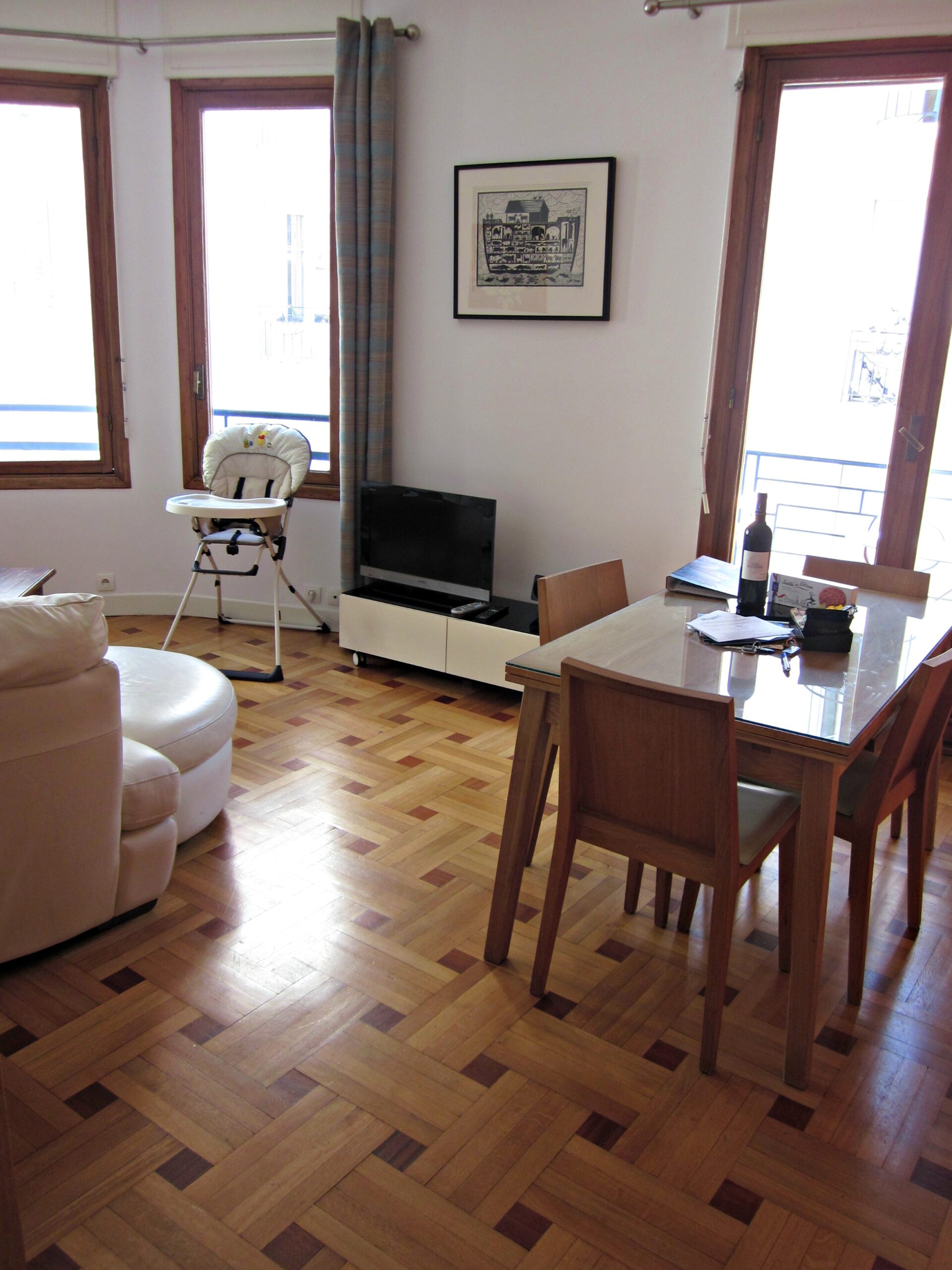 The best part of the apartment was the front room, beautifully bright with a wall covered in windows and opening out onto a balcony where you could watch the world go by. In the summer you could open all of the windows and the balcony doors and it really would be stunning.
