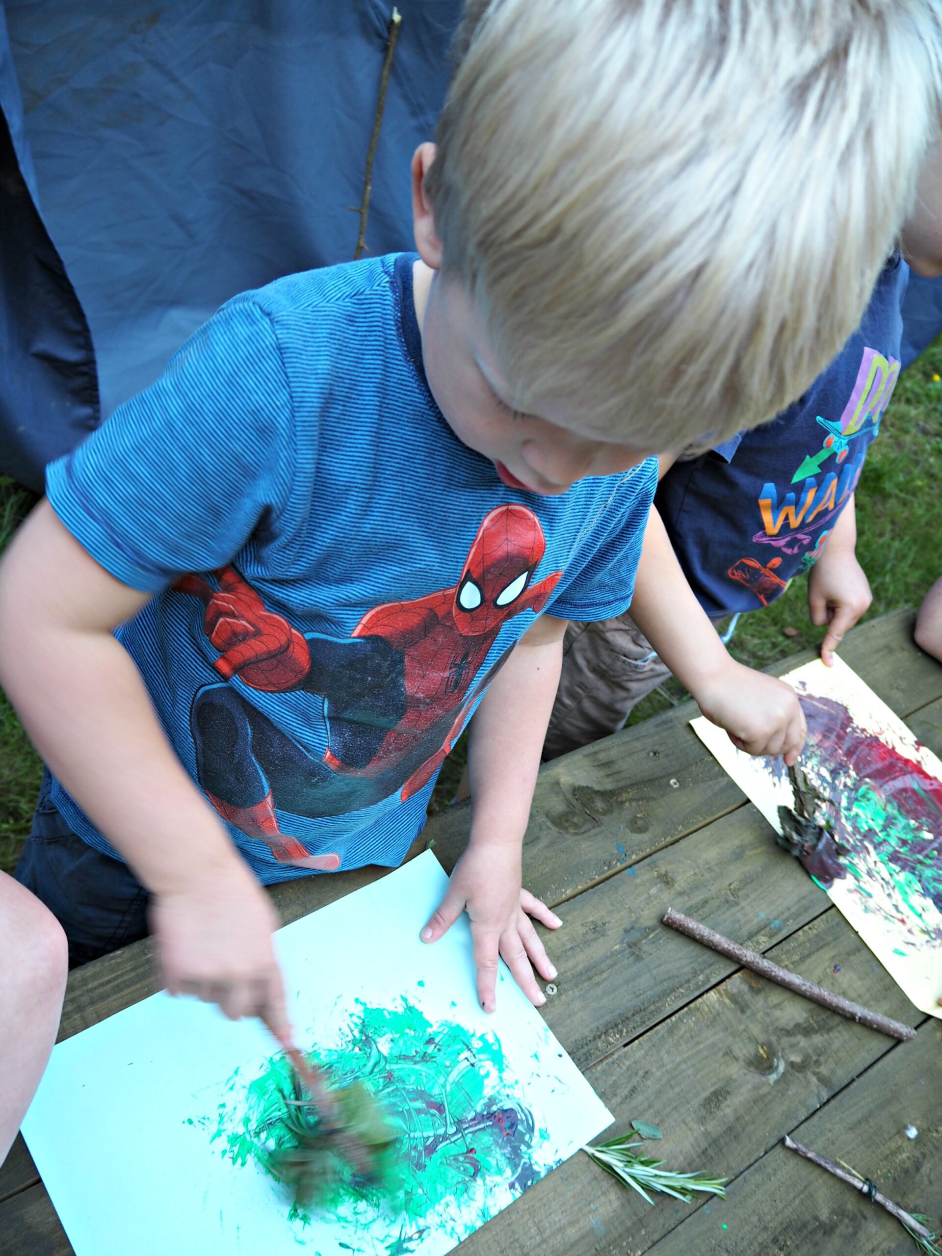 The class we attended was set around the theme of trees. The class was really creatively set up, to translate things simply and in a fun way for children. From making paint brushes out of sticks and leaves, measuring trees to see how old they are and doing leaf rubbing it was all good fun, but also interesting.