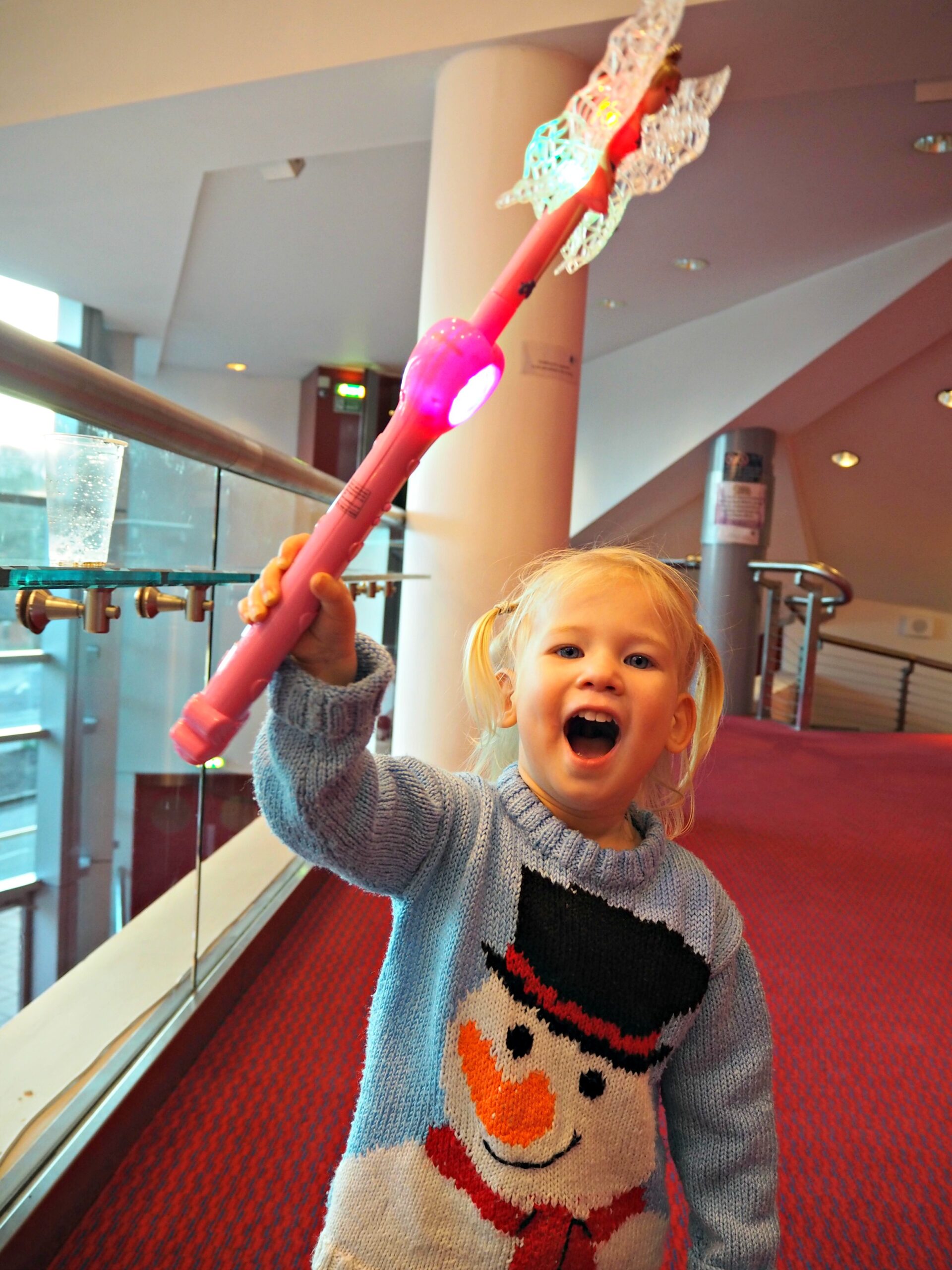 The show was quite long – 2.5 hours long – I cannot tell you if that’s normal or not as it’s a long time since I have been to the panto – years in fact. My daughter did struggle in the second half, but she is only 2.5 years old. In the interval we got the children some fun light-up toys which helped with the attention, and my son thought it was the best thing ever to be able to shoot the bad witch with his light-up gun. It’s worth saying that this might be one of the first times I’ve been to the theatre where there hasn’t been huge queues for the toilets or drinks in the interval which was refreshing with young children in tow.