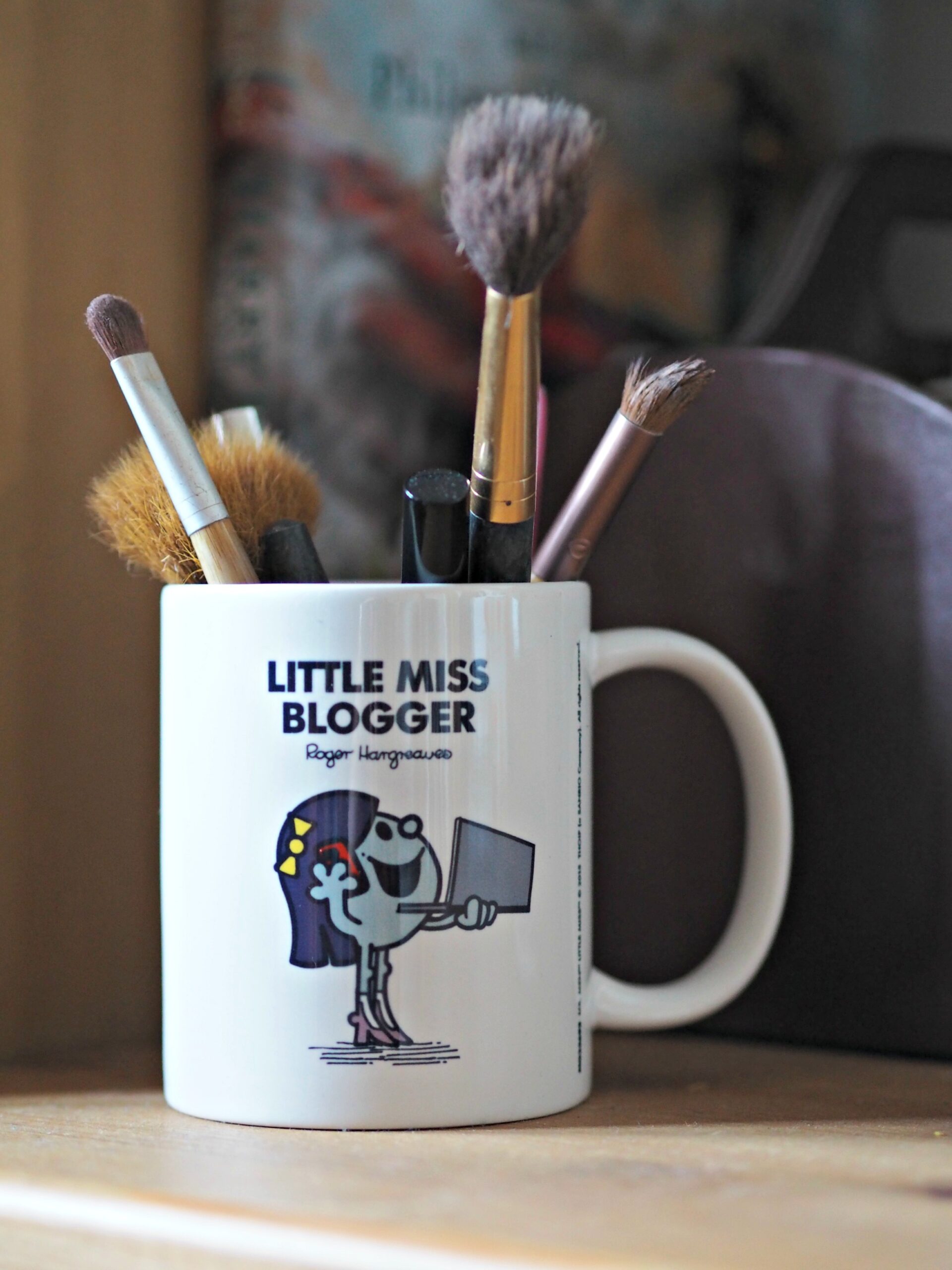 I got a Little Miss Blogger mug for Christmas which I have now used to my make up brushes and think it looks rather cute there. I have also added a pretty coaster for my morning tea, which normally ends up going cold, so I now drink it while I do make up. Nothing like a bit of multi-taking! You can also see my illustrated copy of Harry Potter which I am currently reading a bit each night with my son.