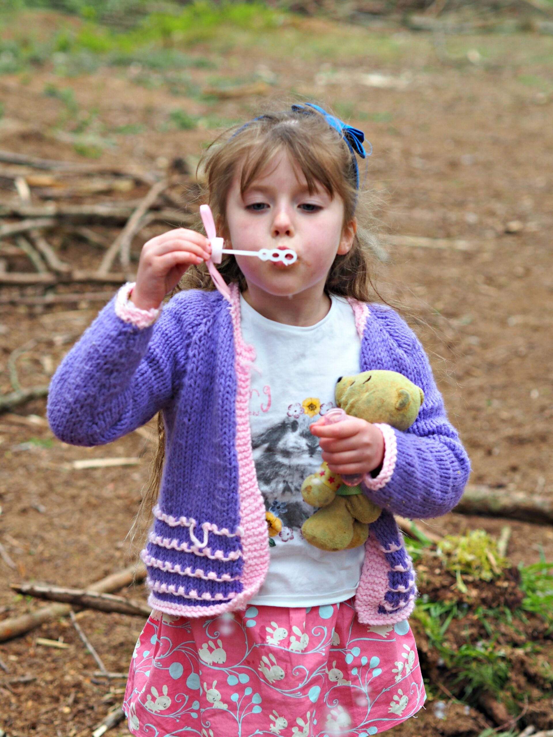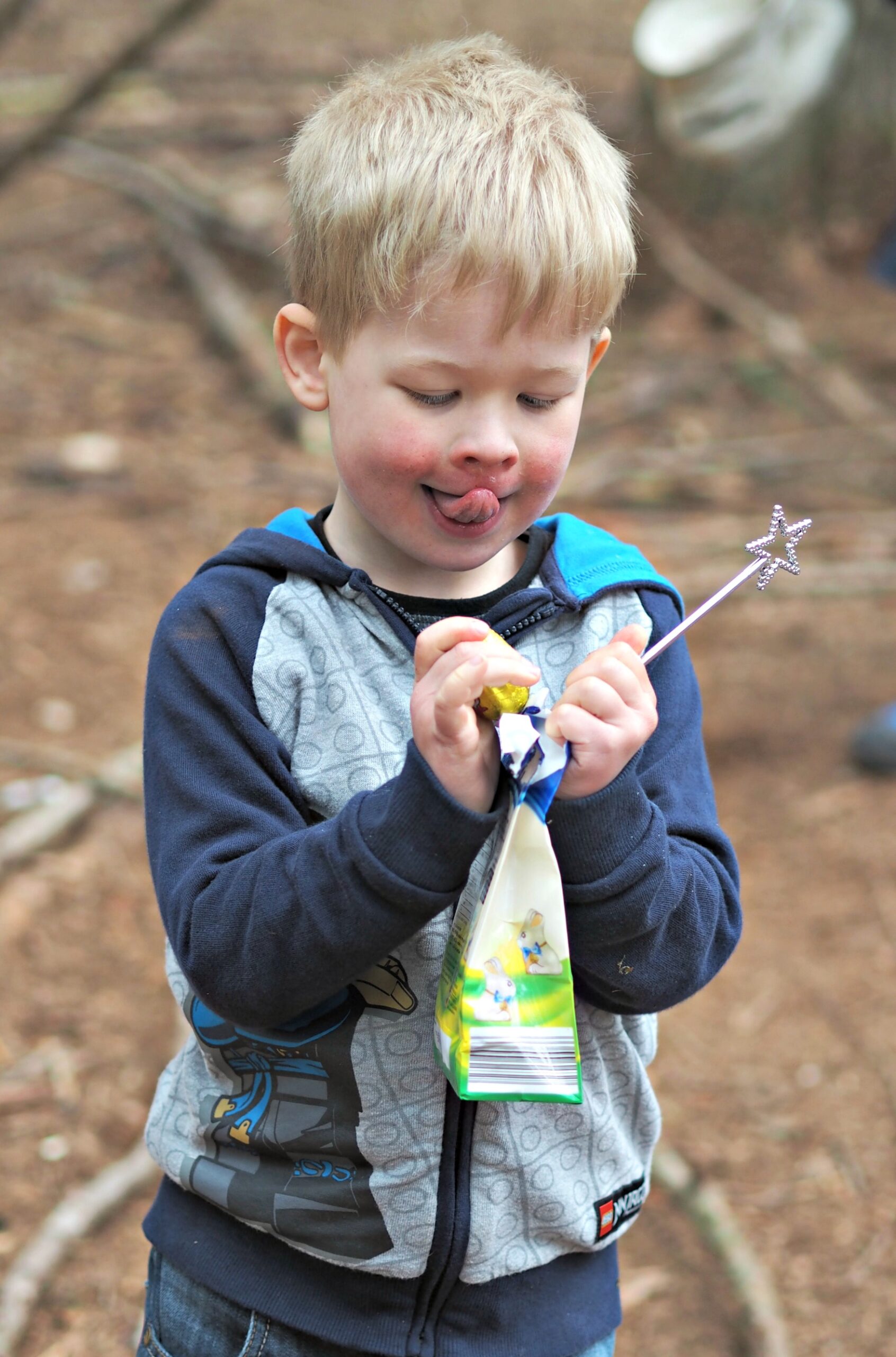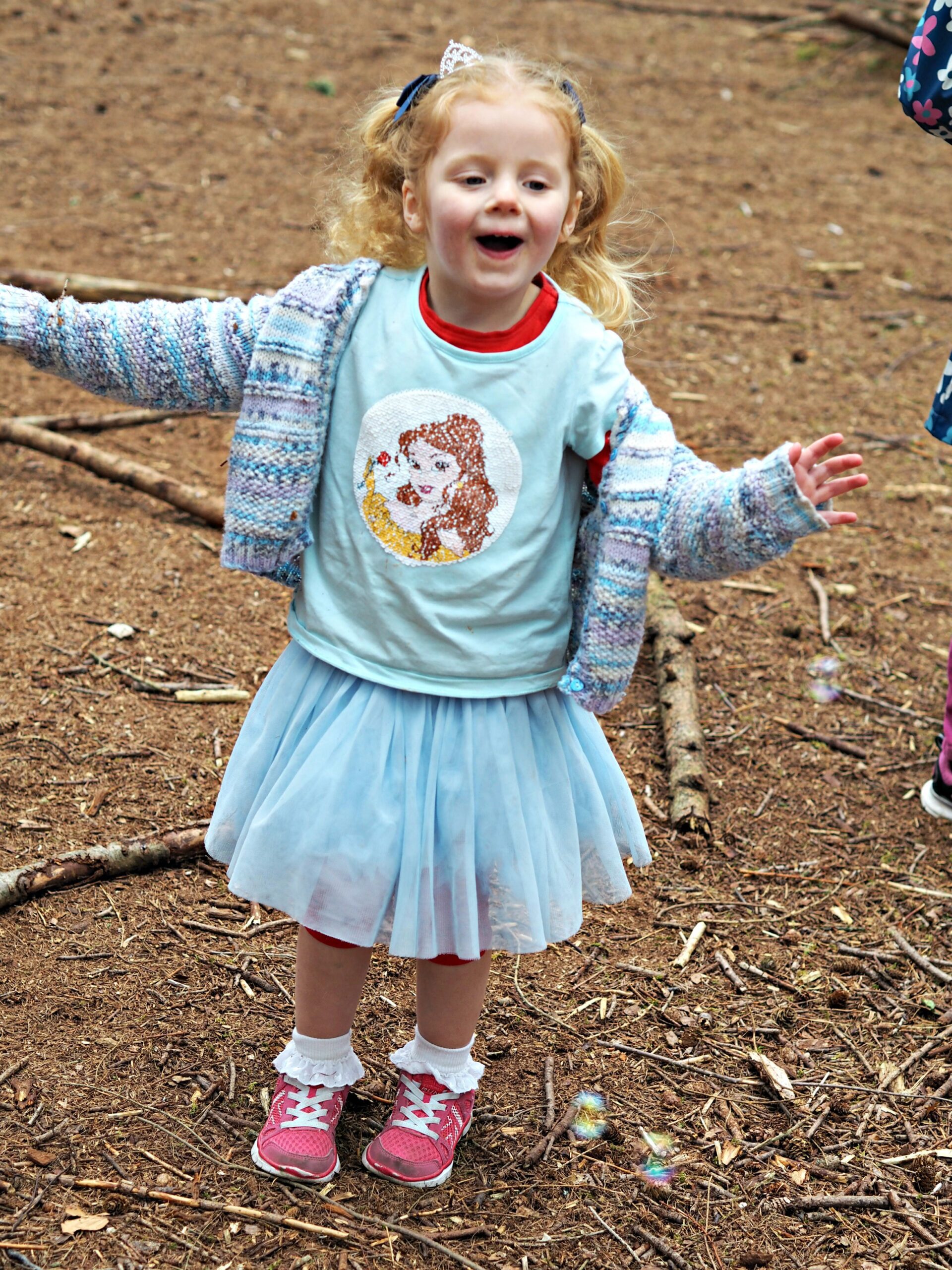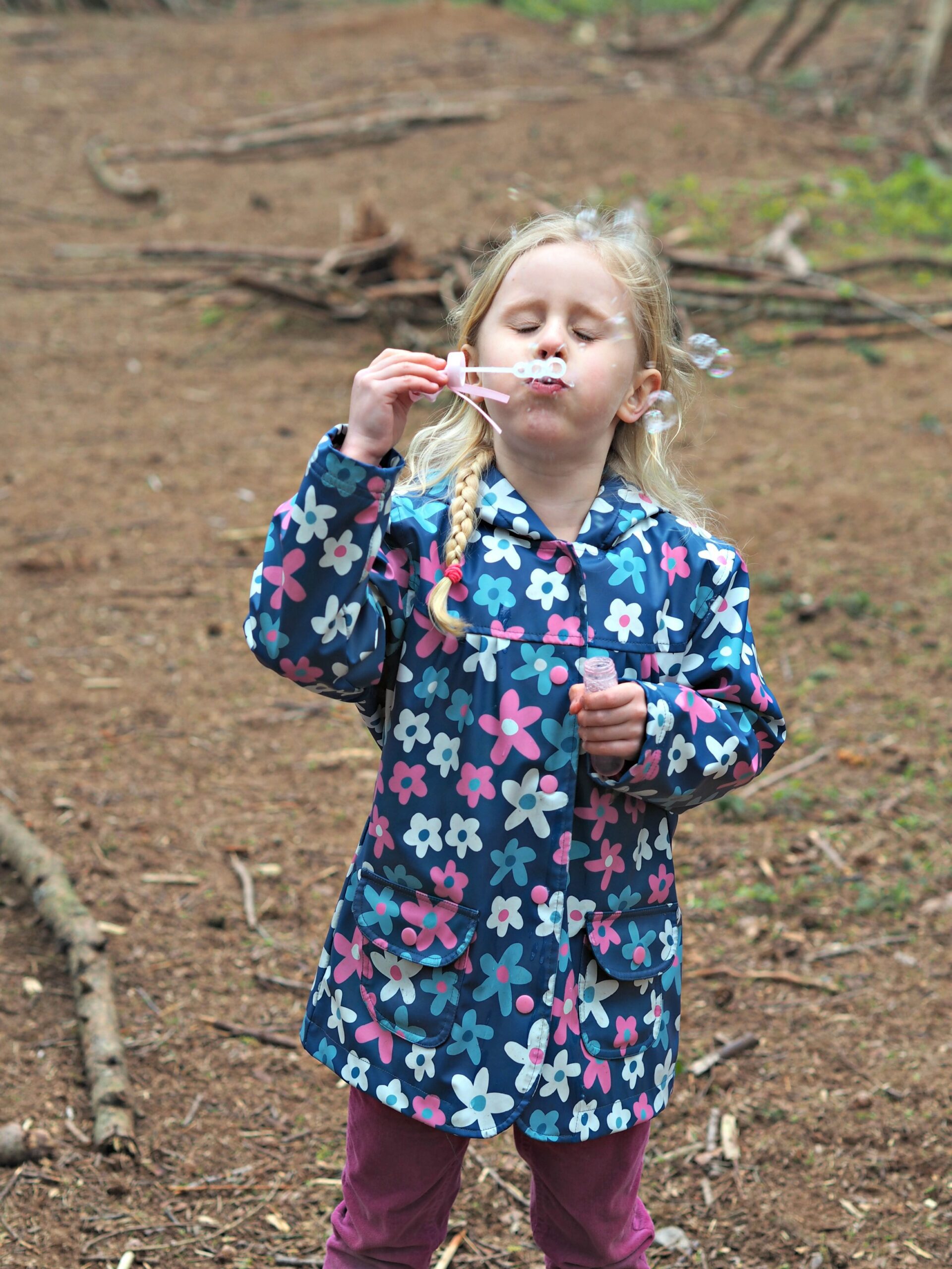 We started off with a yummy picnic in the woods, with the aid of our Disney Princess cups, plates and napkins. Then ran through the woods aided by tiaras and wands looking for chocolate. And finished off with bubbles. The combination of chocolate and bubbles was definitely a winning one!