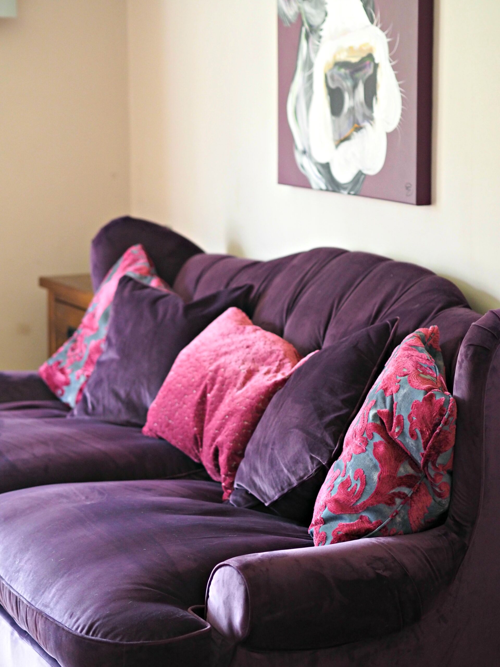 That purple velvet is absolutely beautiful! We have velvet sofas too, and I love how luxurious they feel. The colour is fabulous too – it makes them the focal point of the whole room and brings everything together. You must be really pleased!